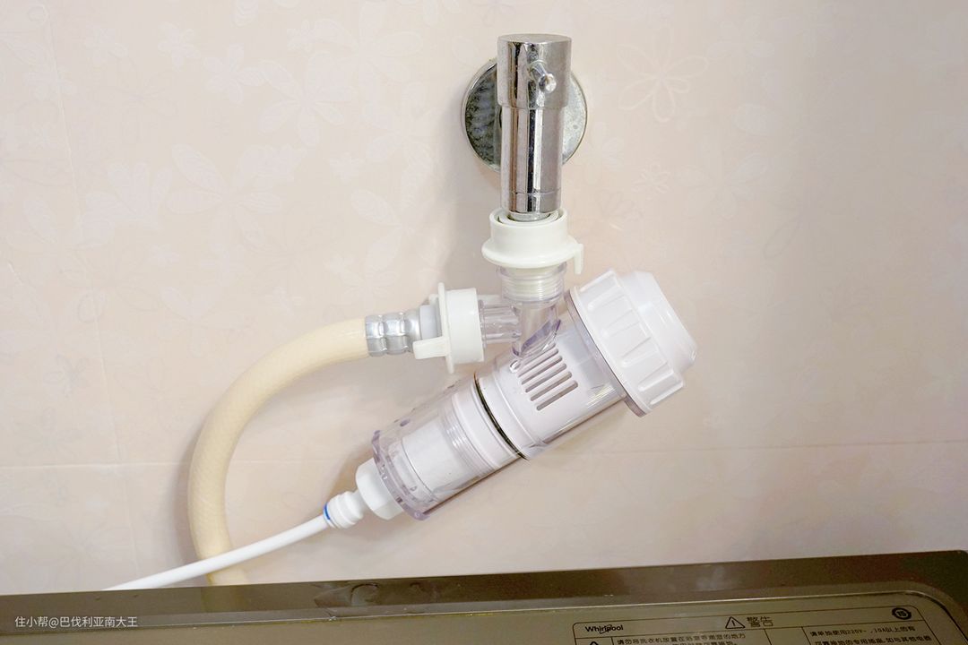 这个就是软水过滤三通器,可过滤水中杂质,防止内桶起垢,安装好后不影响现有大洗衣机的使用,两台可以同时进行。