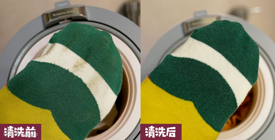 洗衣机的洗涤手法,直接影响到是否能把衣物洗干净,先上一组最最直观的污渍清洗前后真实对比,然后楼主再细说。