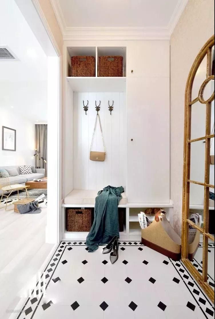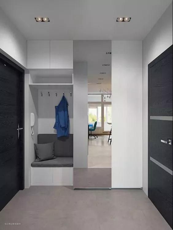 比如,把玄关部分增加衣柜、镜子或者是换鞋凳,让玄关成为一个多功能区域。