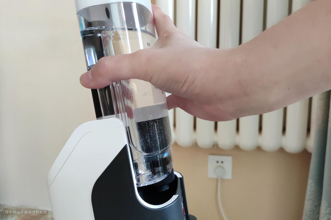 污水箱设计在机身前下方,450ml容量,同样也是可视化设计,使用中方便了解内部污渍位置。