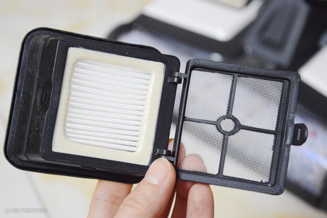内置的滤芯,分为初始滤网和HEPA滤网,防止在扫地吸尘工作时二次污染,两个滤网都支持水洗,不过滤网湿水后,会大幅度影响吸力,所以滤网水洗后必须要晾干再使用。厂家有附送HEPA滤网,替换使用,很方便。