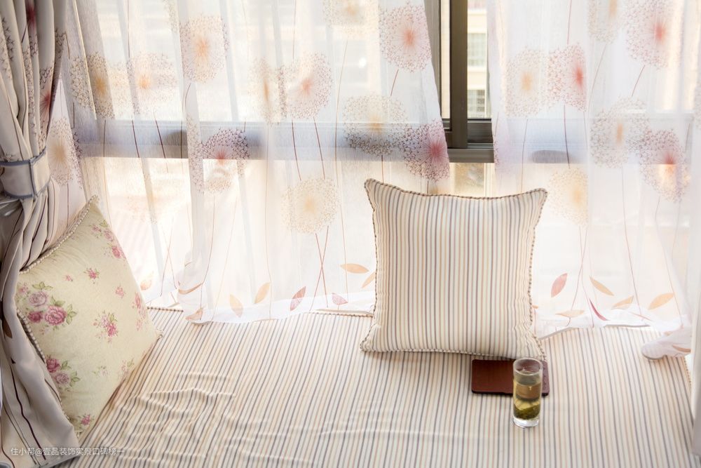 ② 休闲型飘窗:放上软垫、抱枕、小边桌等,十分美观又舒适,是平日饮茶观花听风看雨的好去处。飘窗垫、小抱枕和窗帘以及整个房间的色彩要搭配。