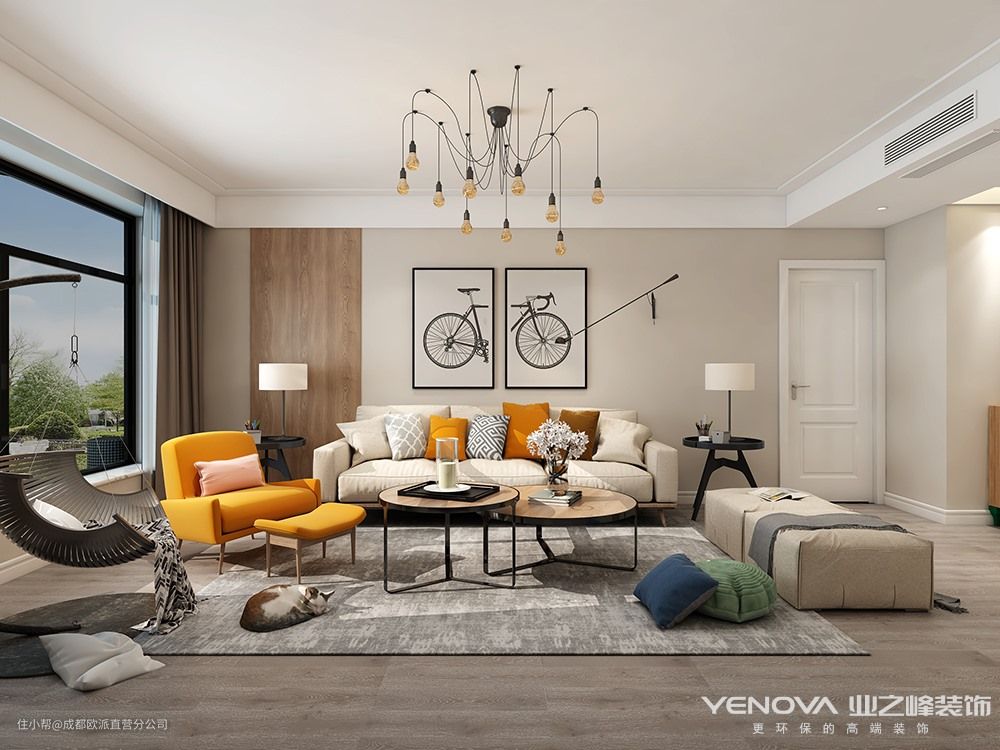 该北欧风格设计特点:简洁、自然、人性化。在建筑室内设计方面,只用线条、色块来区分点缀;在家具设计方面完全不使用雕花、纹饰,含有较多的木色设计。简洁、直接、功能化且贴近自然的设计特点,给人带来一份宁静的北欧风情,而不是虚华设计。