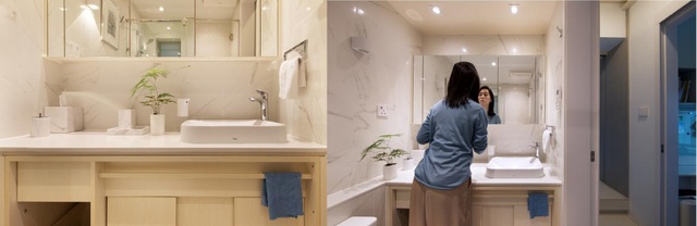 浴室柜上设置了挂毛巾的横杆,十分贴合屋主心意。