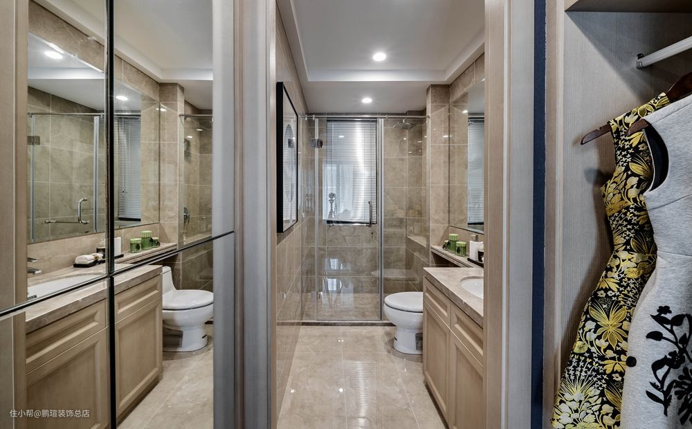卫生间的暖色系瓷砖配合温馨的灯光,让整个空间显得高贵又不失人情味。