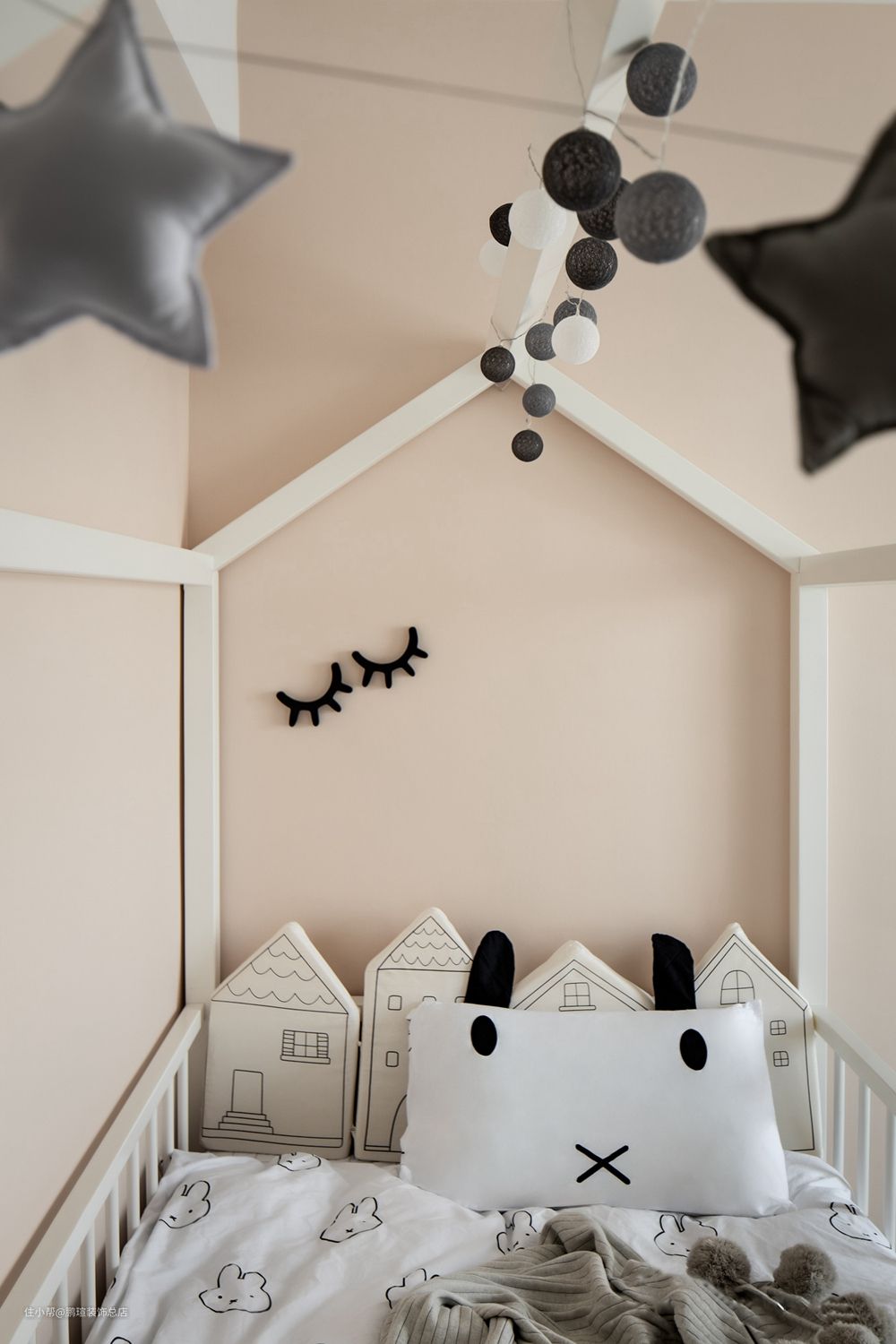 业主夫妇希望能给两岁的宝宝一个甜美梦幻的童话世界,所以儿童房的配色和装饰十分软萌可爱。