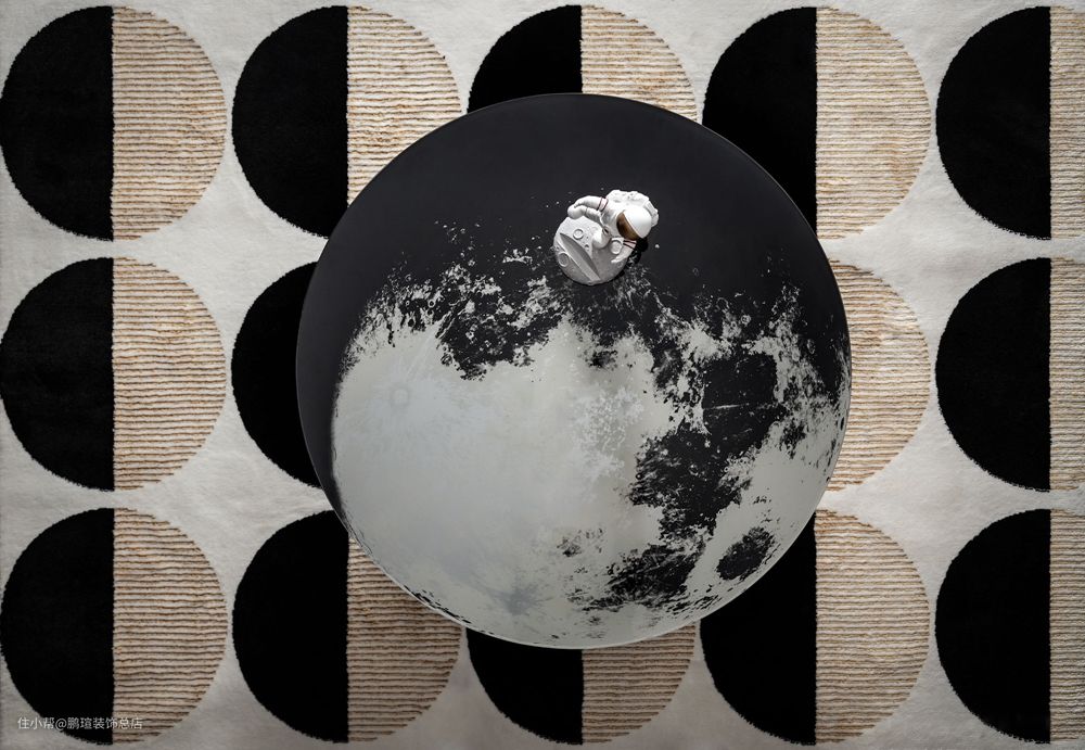 而茶几本身的月球图案与地毯的上弦月图案更是将太空中的神秘色彩非常形象地带入客厅。