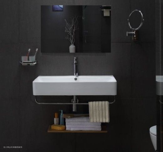 卫生间洗手台还有一种一体盆,不需要单独做台面,台面和台盆一体设计,没有接缝,自然也就少了很多卫生死角。这种盆的造价和台面+台盆相比,要便宜不少。唯一缺点大概就是尺寸比较小(台面尺寸小),而且不太好看(白色瓷质台面不如石质台面好看)。