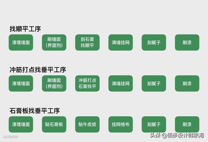 因此质量好的新房、墙体状况良好的二手房,直接用腻子刮大白、找顺平就行。