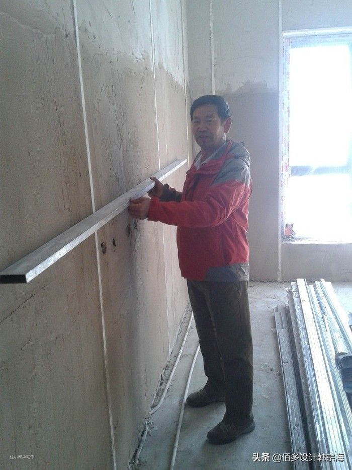 2、需要安装定制家具的墙面,推荐用“冲筋打点”工艺找垂平,误差过大的墙面建议用石膏板找平。