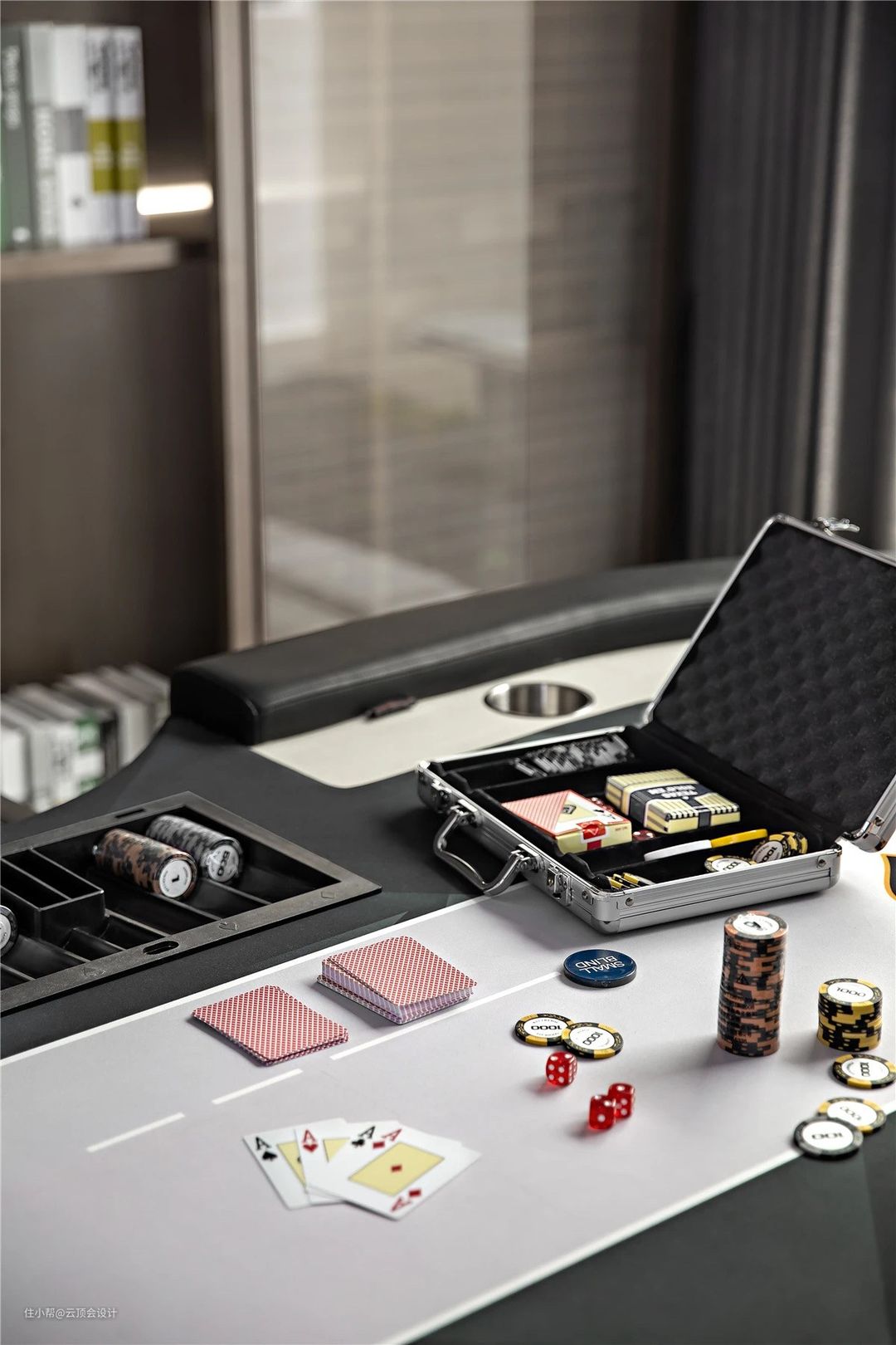 娱乐区德州扑克的出现直接打乱了中式的节奏,让人觉得调皮又惊喜,甚至有种“穿越”的感觉,更加展现了家的包容和设计的无界,中式调调和现代娱乐,碰撞出的当代奢侈质感,是说不清道不明的让人着迷,直让人想在桌子旁坐下畅玩。