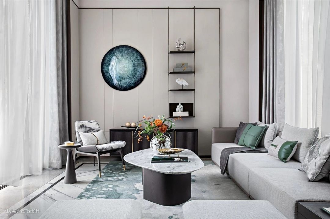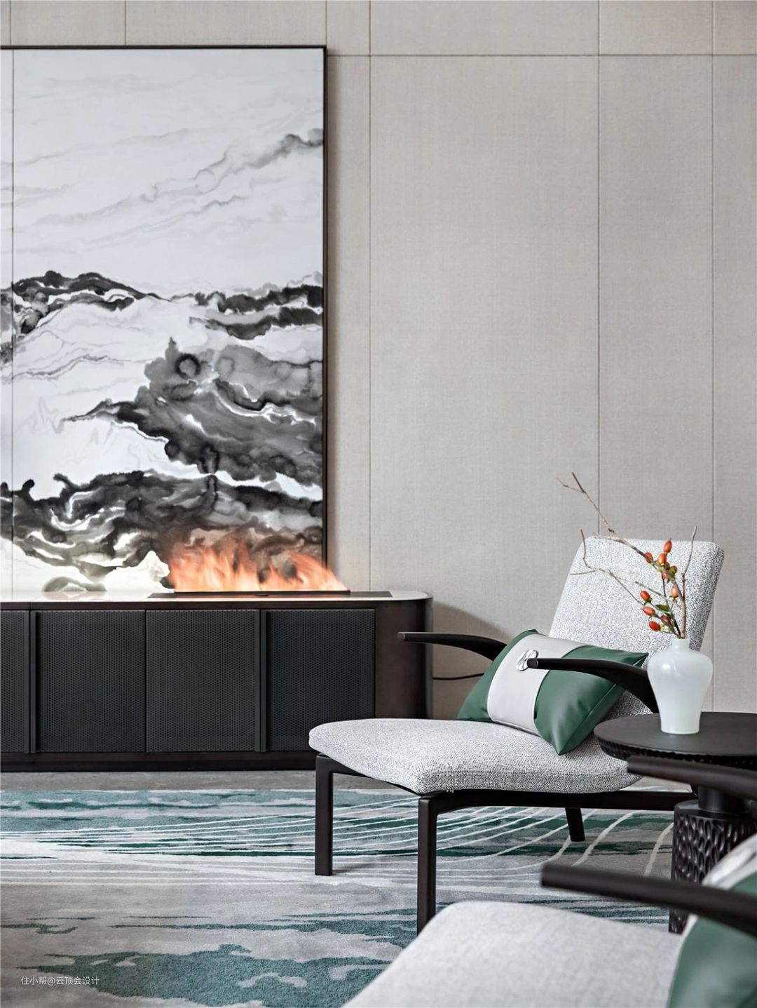 素色温暖,黑白灰经典,以水墨元素与少量金属点缀搭配,艺术品《韵》打破直线氛围,融入传统方圆设计哲学,在深沉中释放东方气质,在中式古典中彰显精致大气。