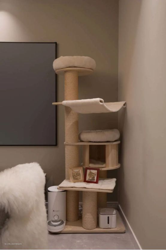 摆下沙发后,过道大概还剩1m多,为了防止磕碰,在转角处贴上了墙面猫抓板????,同步解决了毛孩子拆家的问题。