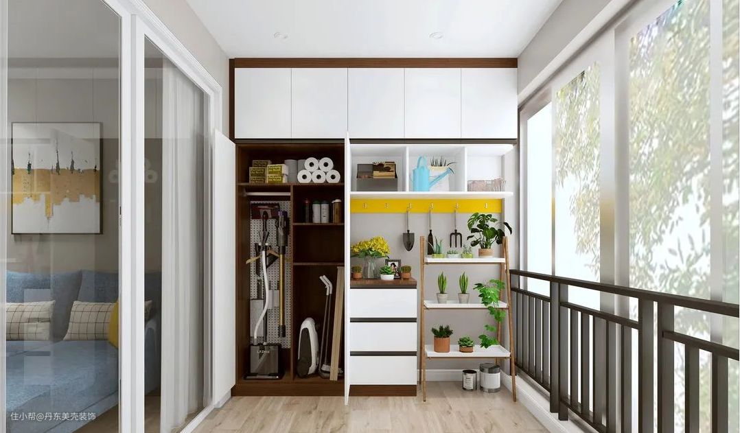 ▲ 半打通的阳台非常适合做收纳设计,到顶储物柜与门垛齐平,不仅空间收纳量翻倍,而且视觉上非常美观。