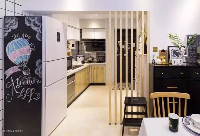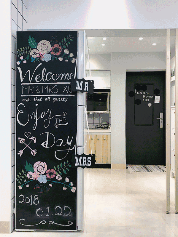 客厅另一个重头戏,就是冰箱侧的黑板墙啦~