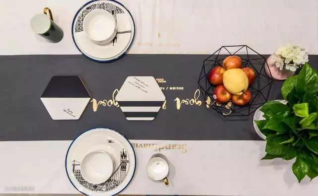 电视柜上面铺了Moreover的千鸟格桌旗,