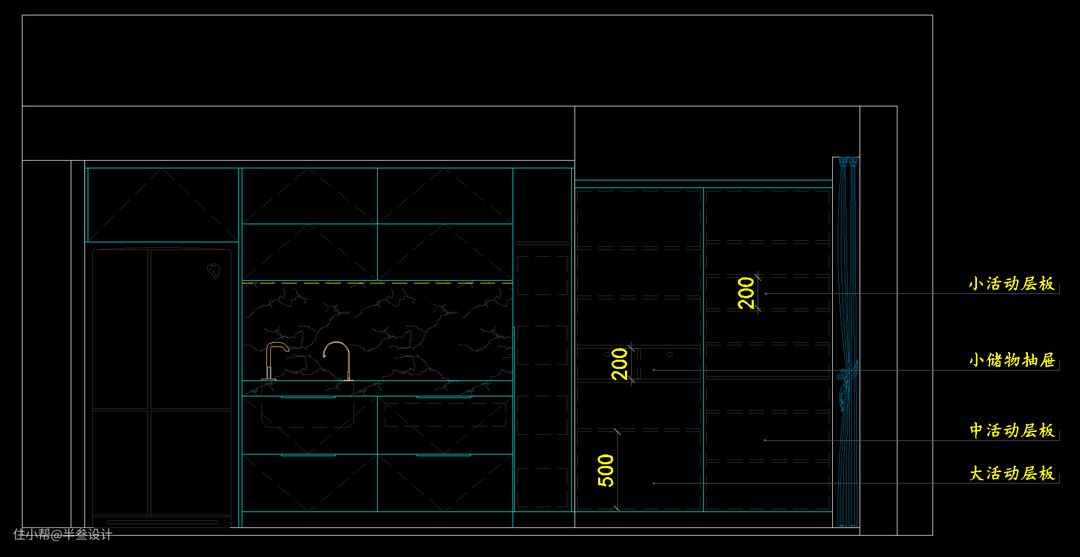 在设计给宠物使用的储物柜时应该多考虑柜体内部结构。宠物用品除了宠物口粮以外普遍体积较小,所以柜体内部应该多考虑使用小抽屉,高度10-15厘米。多用活动隔板方便后期调节高度,活动隔板间隔20-35厘米。也可以购置一些方便收纳的小型容器来代分类存放瓶瓶罐罐。