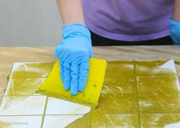 填缝后,用小刮刀将其抹平,然后用蘸有酒精的抹布及时清除溢出物。如果固化状态良好,则可以直接去除瓷砖缝隙周围的多余助剂。