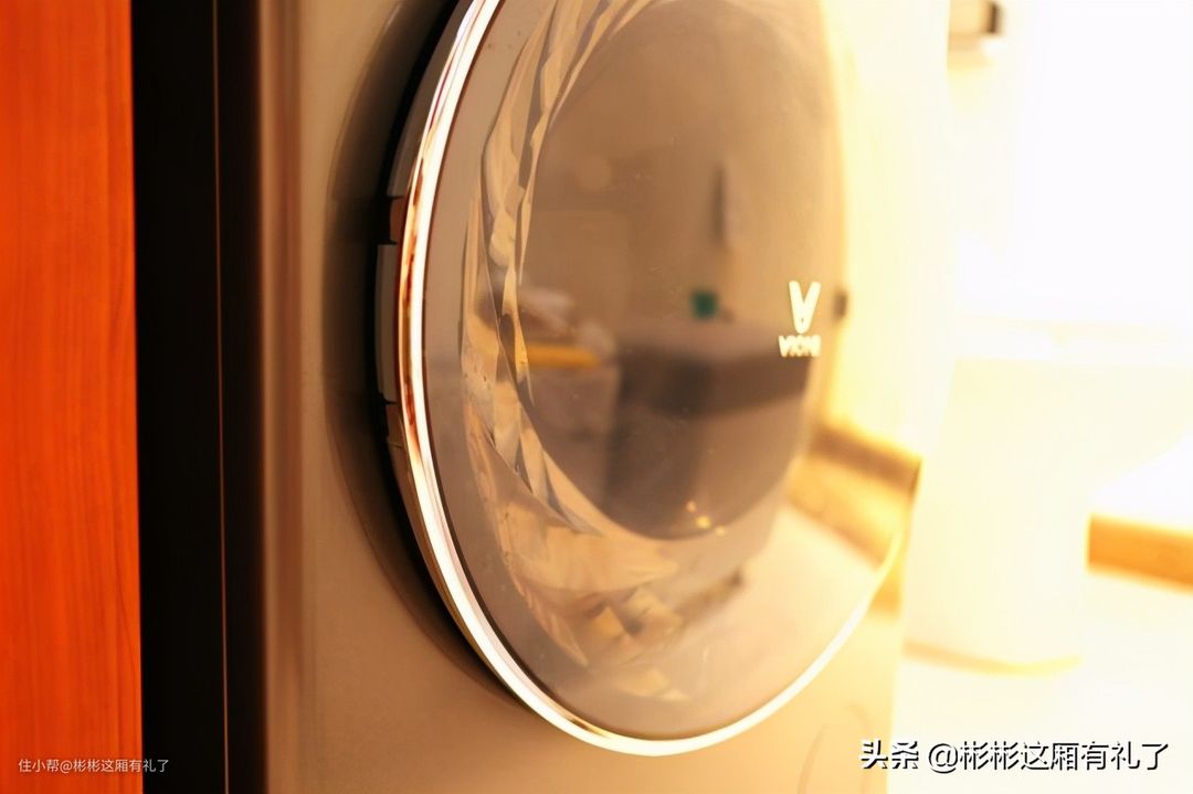 ▲洗衣机有一个LED灯光照明。这是一个小小而又实用的功能。每次打开洗衣机门,灯光就会自动亮起。可以查看衣服的清洗效果。或者是在晚上,即使房间不开灯。也能很方便的从洗衣机里拿取衣服。520毫米直径的大窗口,看着挺霸气,灯光从窗口里透出,使得冰冷的洗衣机多了一些灵动。