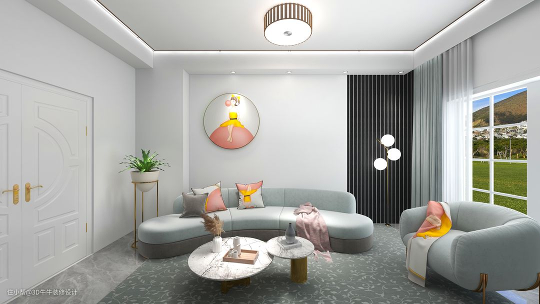 当空间中有太阳光+自发光+面光源内推光+射灯+点光源+面光源补光的时候,我们看一下下图效果3