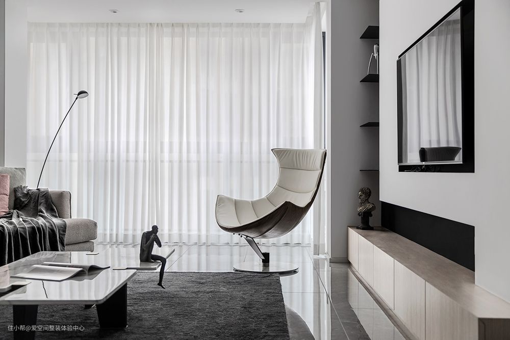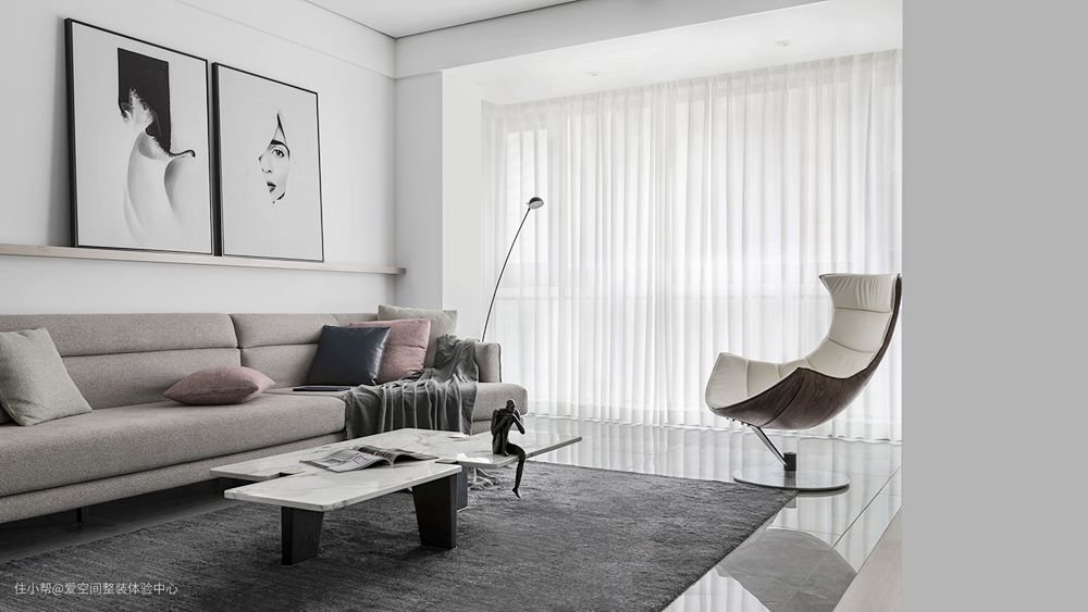 1-设计师利用点、线、面的空间形式,通过高级灰的基调,达到以少胜多,时尚感自然流露的家居的效果。