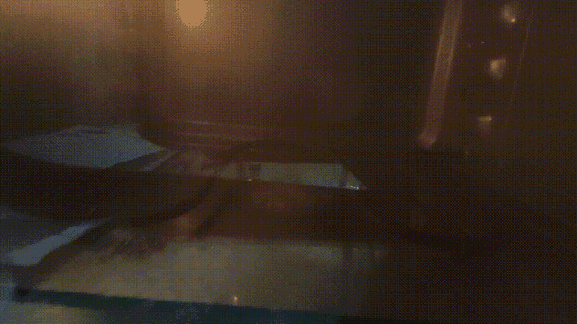 ▲从观察窗内可以看到蒸烤箱底部的水渍被加热沸腾,蒸汽充满了烤箱