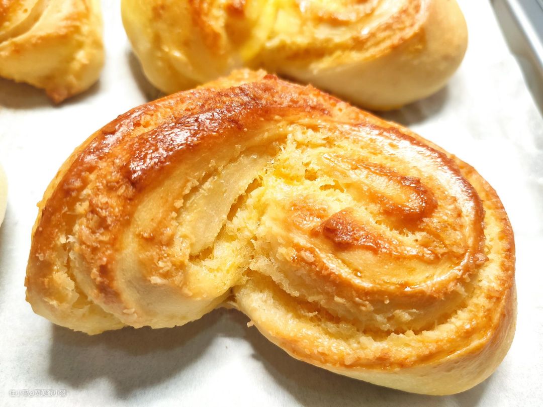 ▲初次制作椰蓉面包可以做大一些,这样造型摆起来更容易