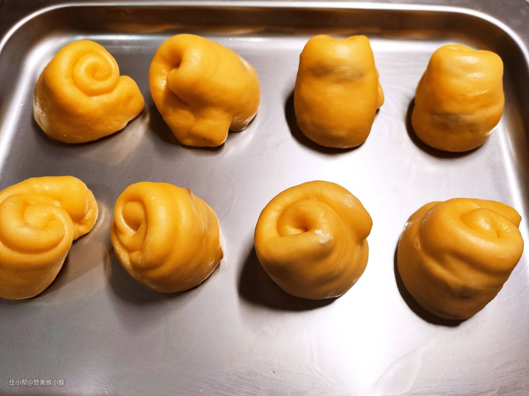 ▲卷起来后继续醒半小时左右待用,注意每个面包之间留够至少半个面包的距离留给面包膨胀