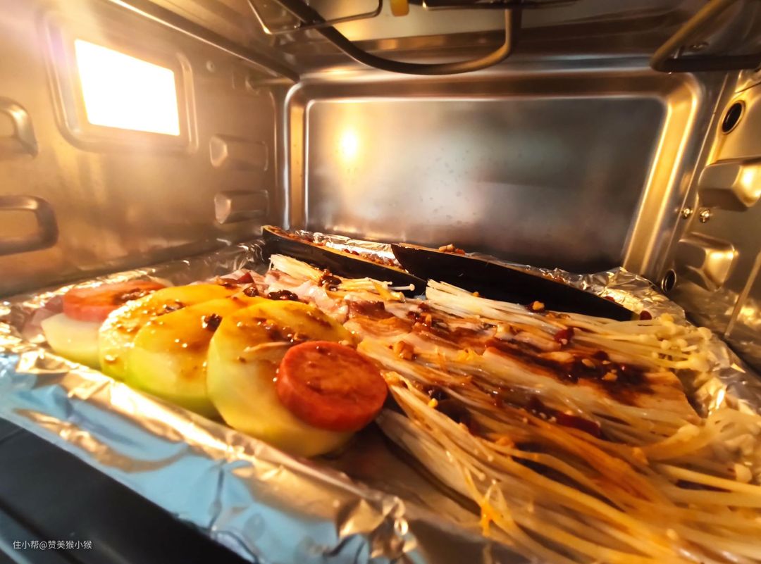 ▲健康又美味的蒸烤版烤什锦菜就完成了,五花肉吃起来有一定嚼劲同时又不油腻,茄子软烂,土豆松软,金针菇由于蔬菜烤出的汁水,本身也保留了十足的水分。