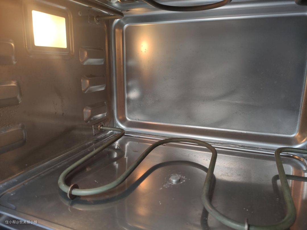 ▲选择蒸烤模式,这样烤出来的面包更加松软而不会太干,上加热管170度,下加热管165度,烤制20分钟即可。