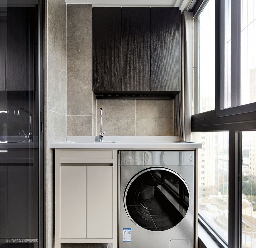 而阳台洗衣机的上面,还以做柜子,一是可以保持与洗衣机的协调,二则可以放洗衣粉、洗衣液、刷子等清洁用品用具。