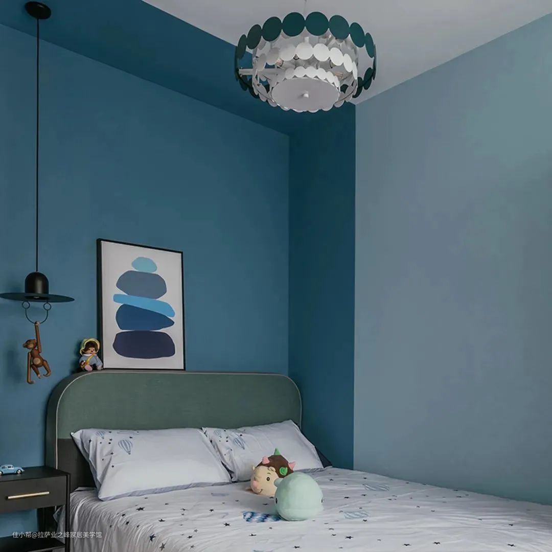 ▲儿童房也是适合拼色墙的空间,用简单的颜色做出童趣的感觉。可以提升他们的创造力与想象力。
