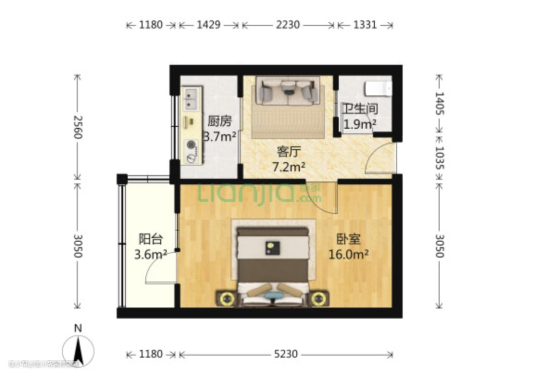 再来看户型:走道扩大为小方厅,虽然面积不大,但却实现了“食寝分离”,客厅可以承接起用餐和会客的基本功能。