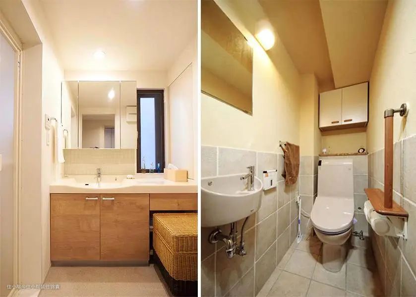 有条件的可以将洗手盆在外面单独开辟空间,至于洗衣机,厨房和阳台都是选择,甚至是厨卫一墙之隔的过道走廊皆可利用(只要能解决上下水问题)。