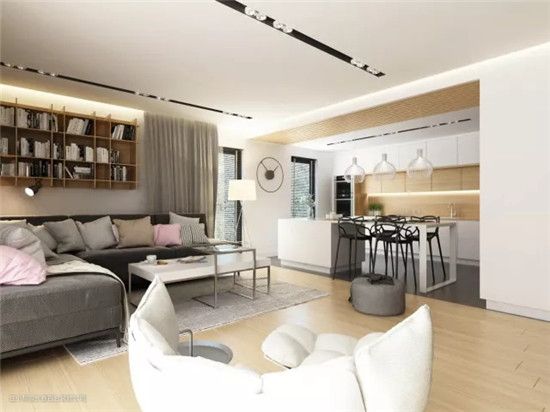 灰、白、木色搭配出来的空间可以既现代有温馨