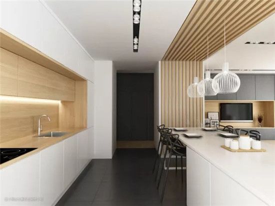 ▲ 极简主义的厨房没有设置把手,没有可见的拉手,只有装饰的绿植。
