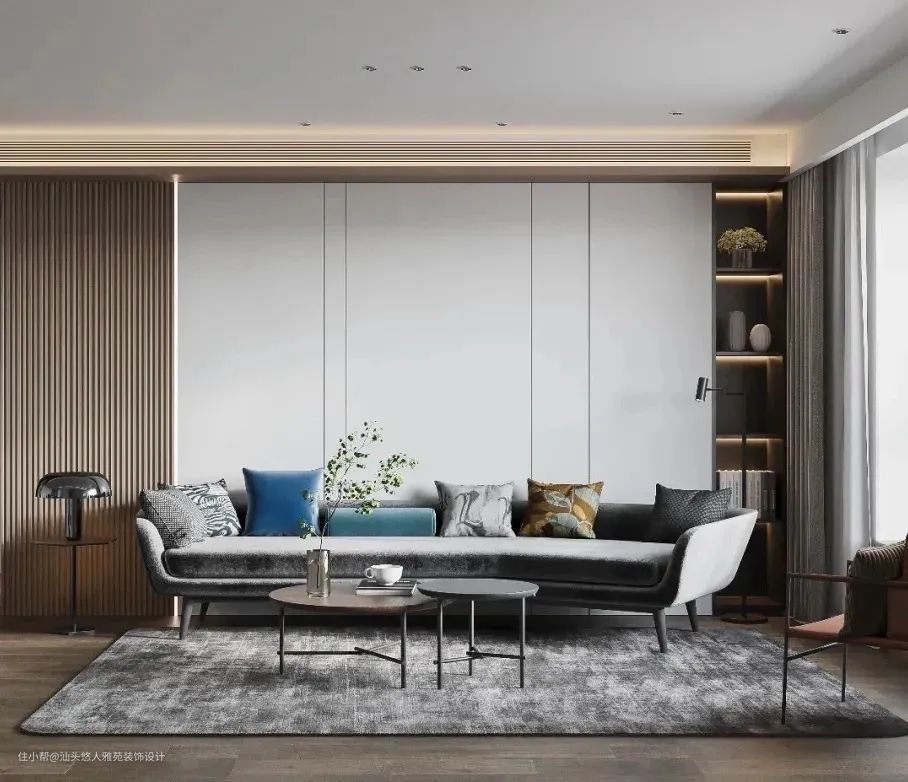 小结:长城板作为造型板,利用自身线性有序的肌理效果,使简约的空间创造出一种精致的高级感,同时兼顾诸多优点,大、小面积都可使用。