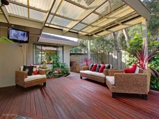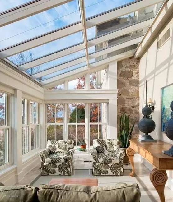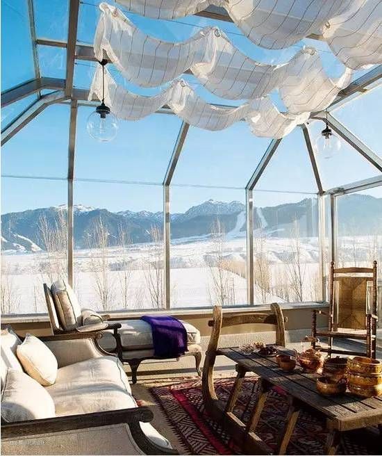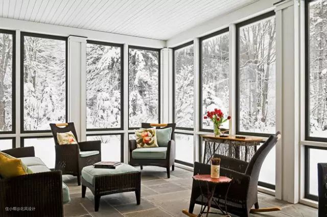 这算是最简单粗暴的方法啦,给露台做一个玻璃顶,直接打造成阳光房。相信这样可以免掉你的一切后顾之忧。