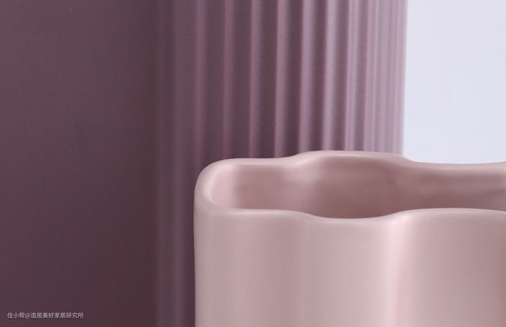 而颜色上比较偏向于莫兰迪色系,低饱和度的呈现让整个花瓶看起来更加柔和,还有表面仔细看就能看出的磨砂质感,让人不禁开始对花与花器之间的融合期待了起来。
