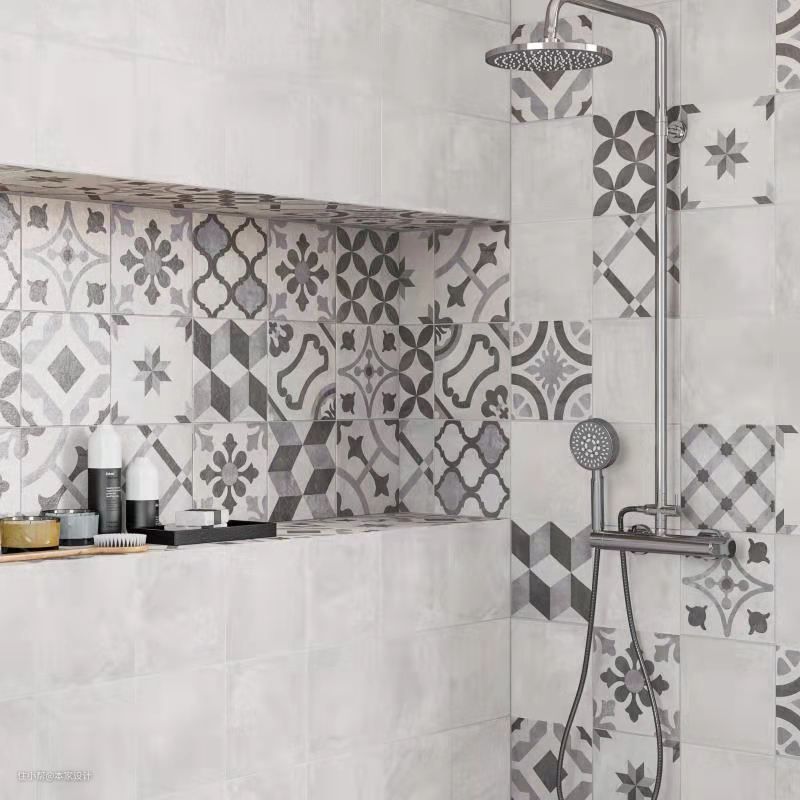 如果说前两种瓷砖的拼接还有所讲究,那么花砖的搭配无疑更为开放。尤其是部分使用,永远是出挑夺目的选择。