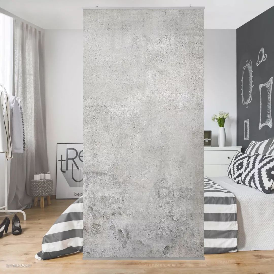 嵌板窗帘是优秀的房间隔断!这个混凝土外观面板窗帘重建了空间。