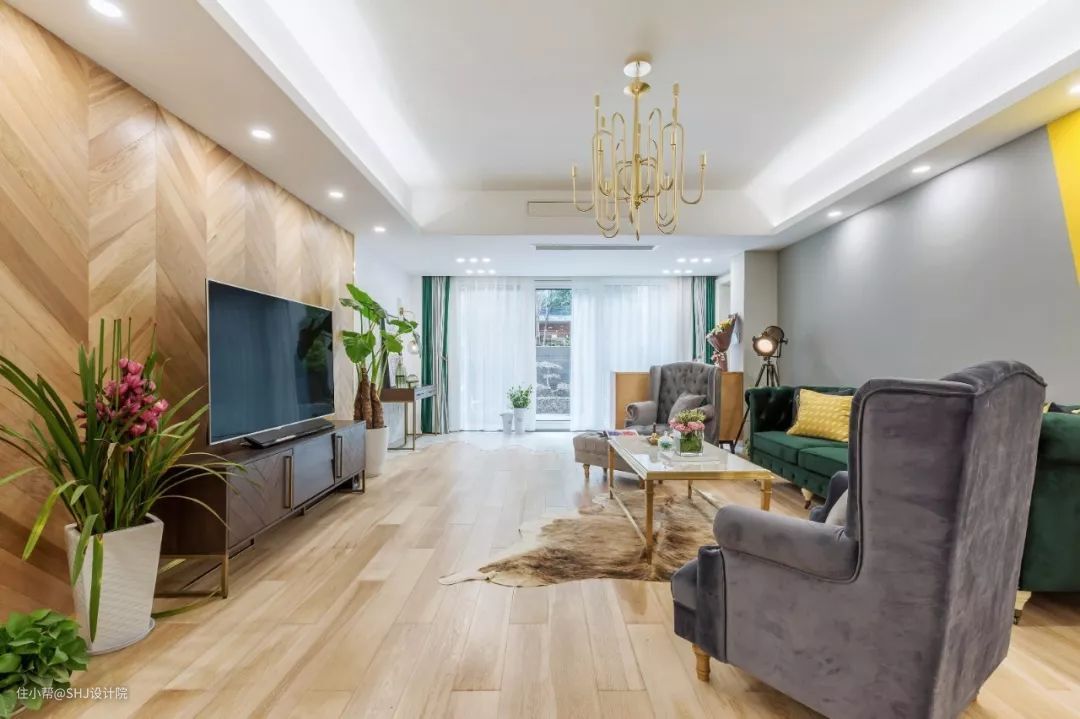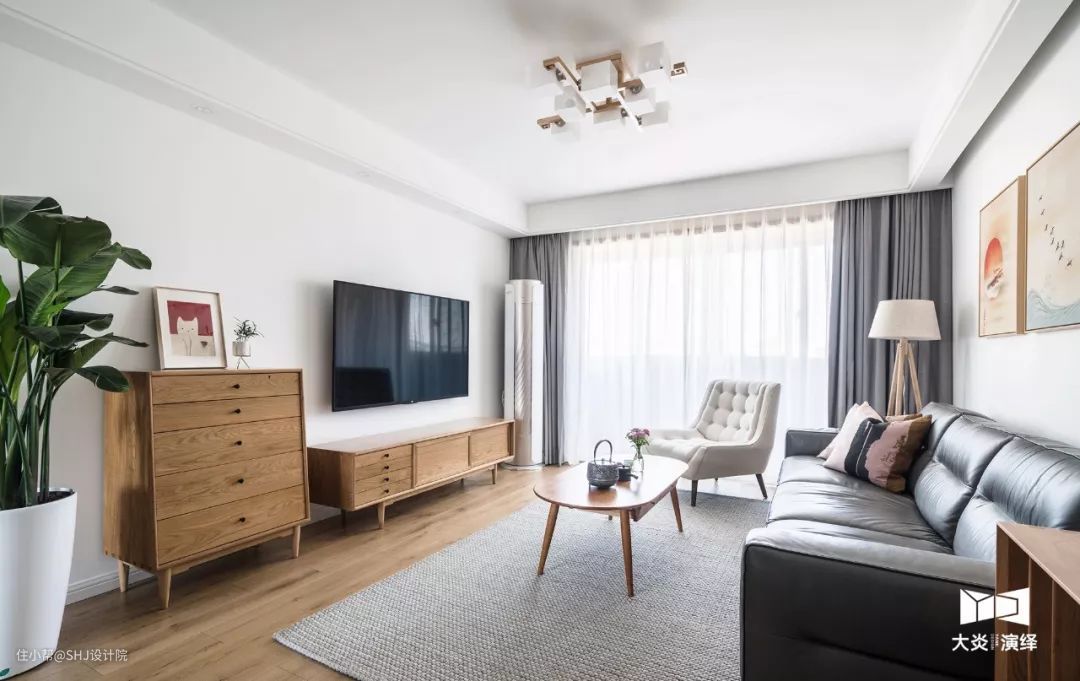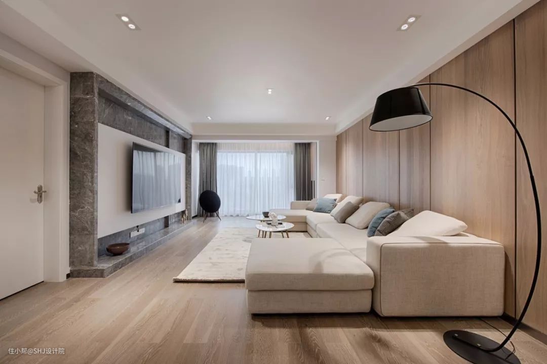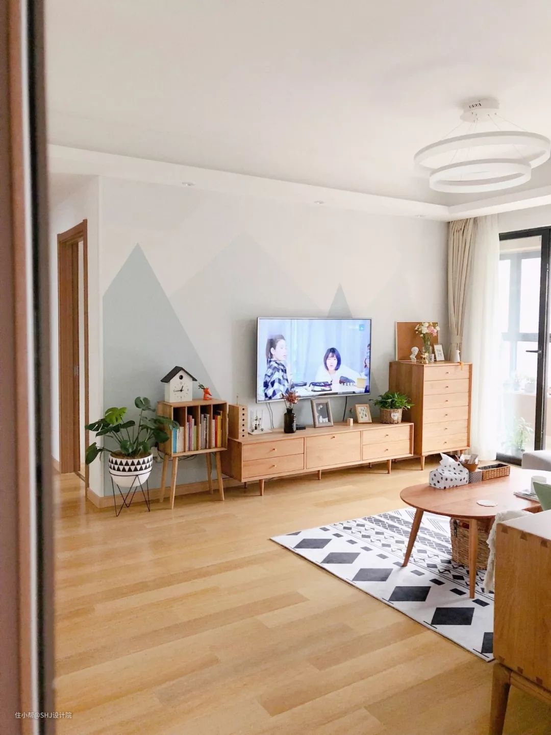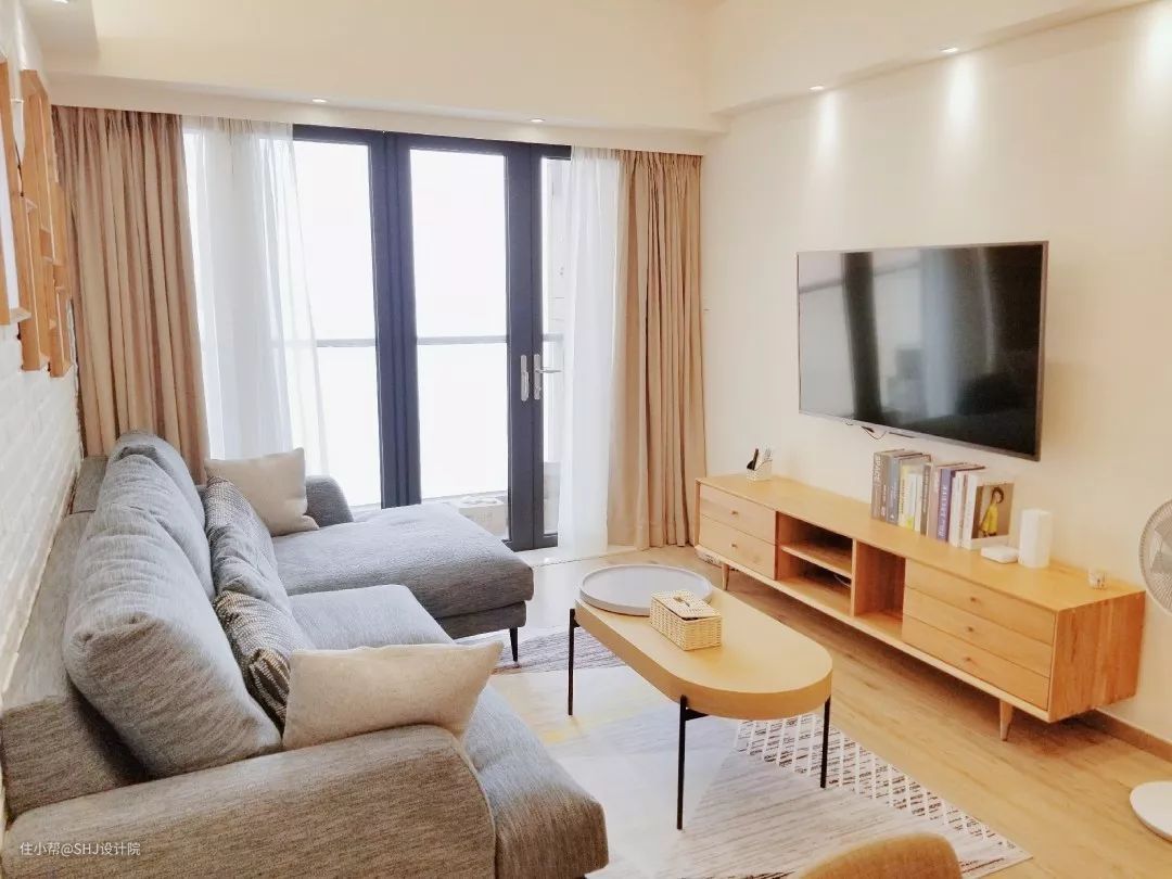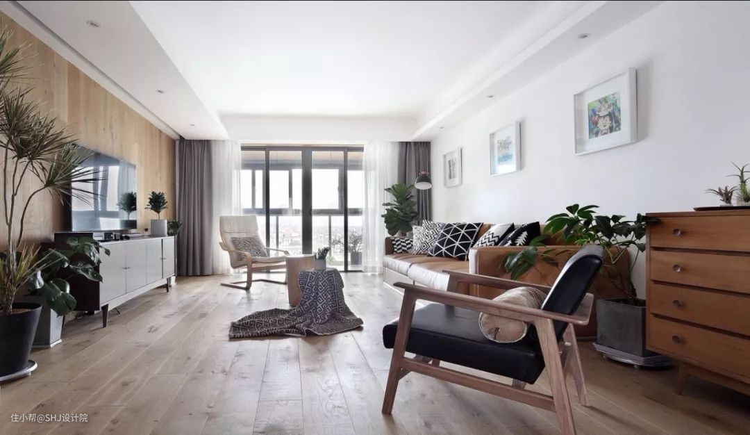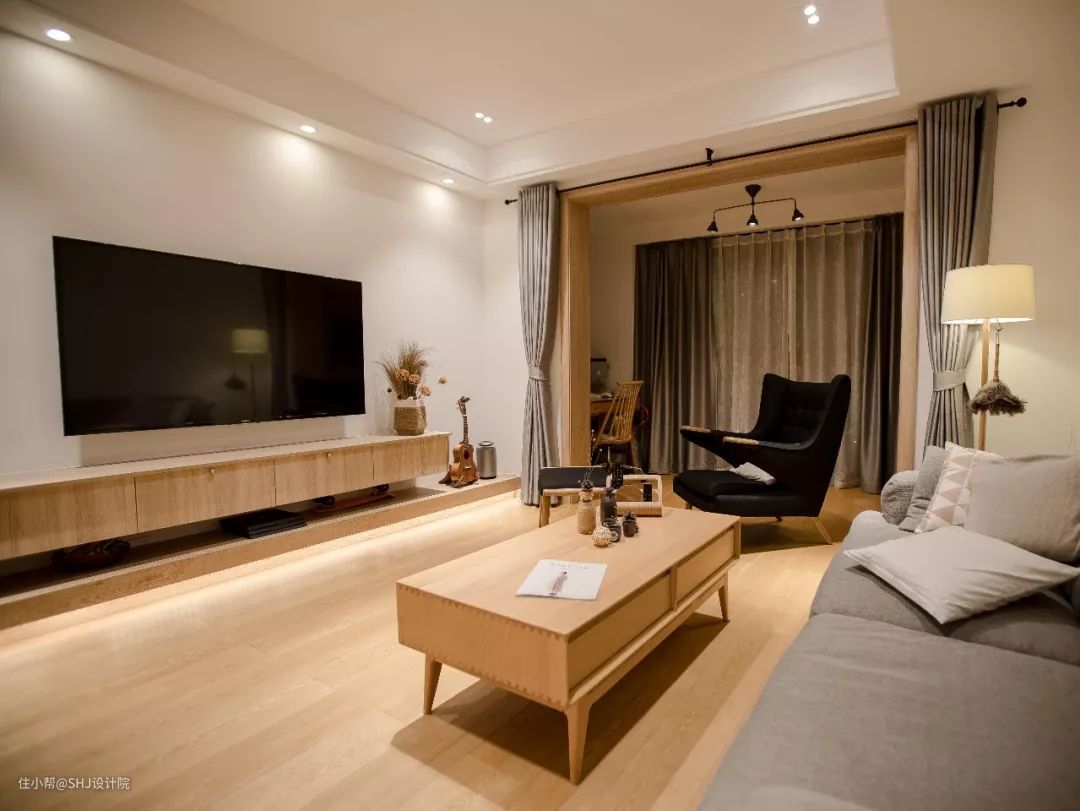 比较简单直接的是木地板的客厅基础,再搭配上木质感的电视柜,结合舒适的布艺或皮艺沙发,这样既能享受到舒适的坐席位置,又能感受到自然舒适的原木风气息。