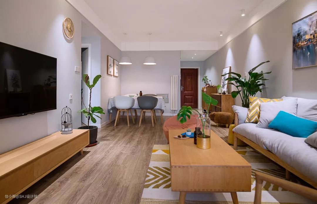 木地板的基础下,客厅的成品家具(电视柜、茶几或沙发)都采用原木质感的元素,整体空间的风格氛围也会更加的自然档次,使得充满更加轻松惬意。