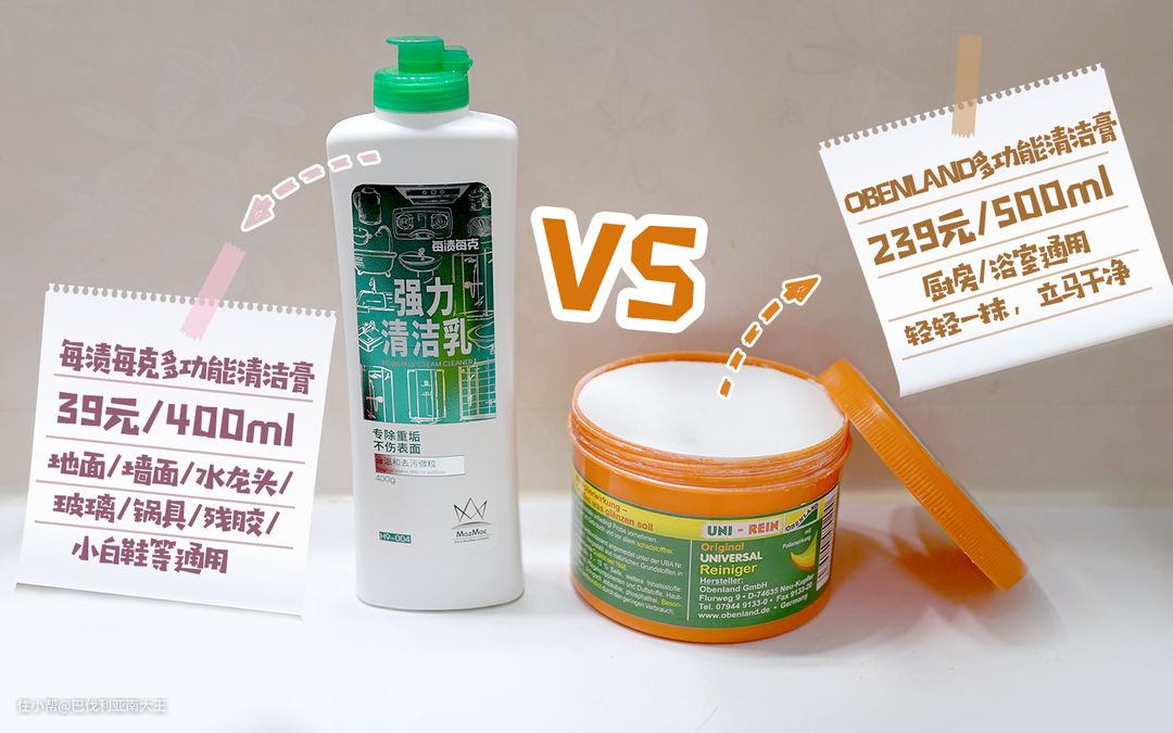每渍每克强力清洁乳可以作为德国OBENLAND多功能清洁膏的平价款,专除重垢,全屋通用!价格仅是OBENLAND清洁膏的一个零头,39元/400ml,堪称良心国货!