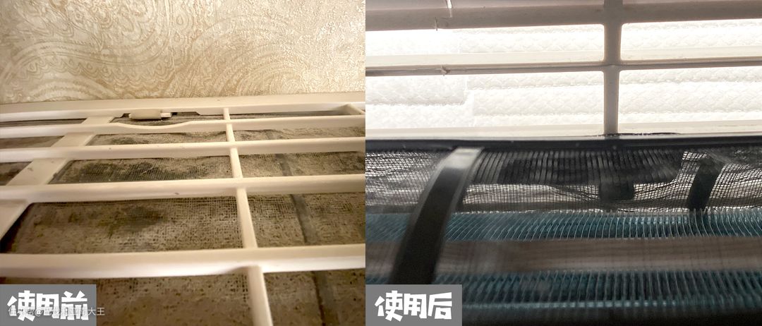 这是使用空调口罩前后的滤网干净度对比,有够夸张吧!就个人体验而言,加了口罩保护的空调,吹出来的风量或许会比平时小一丢丢,但真的对身体更健康!
