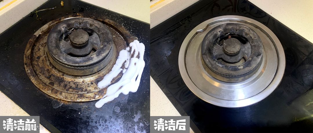 煤气灶上很难去除的各种印记,无需用钢丝球硬搓,挤上清洁乳液后,用百洁擦蹭一蹭就搞定,跟新的一样!