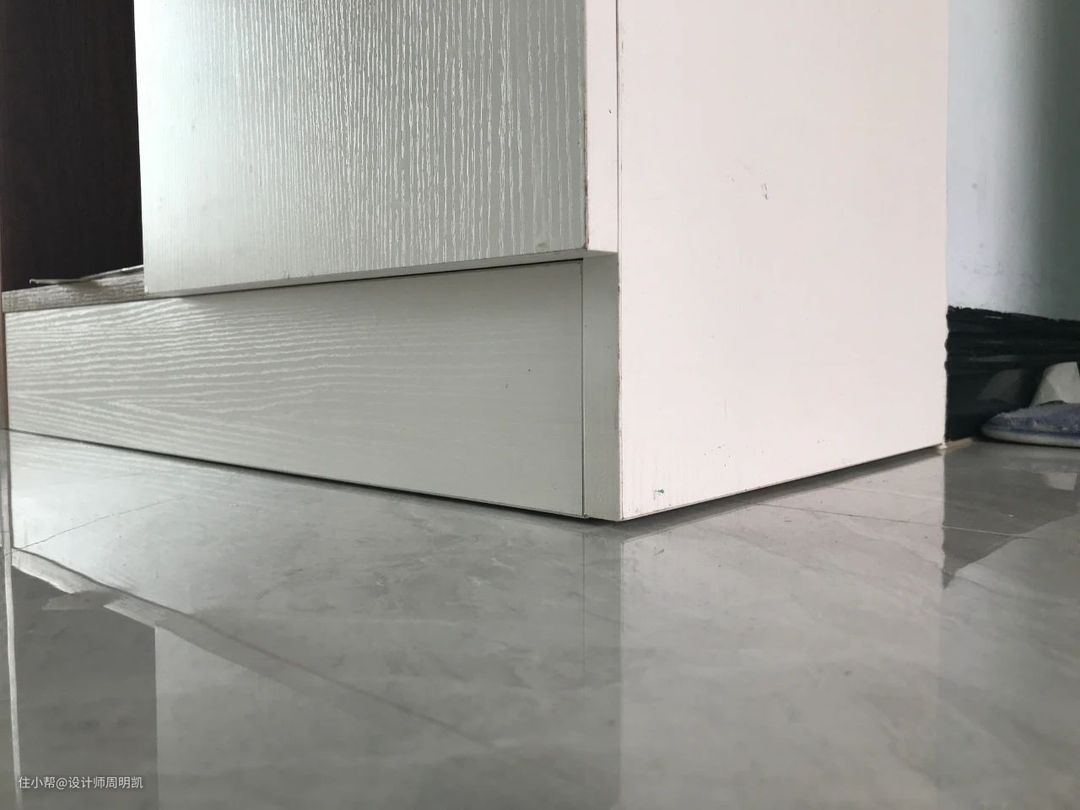 ▲柜子与地砖中间,直接用板封边即可。