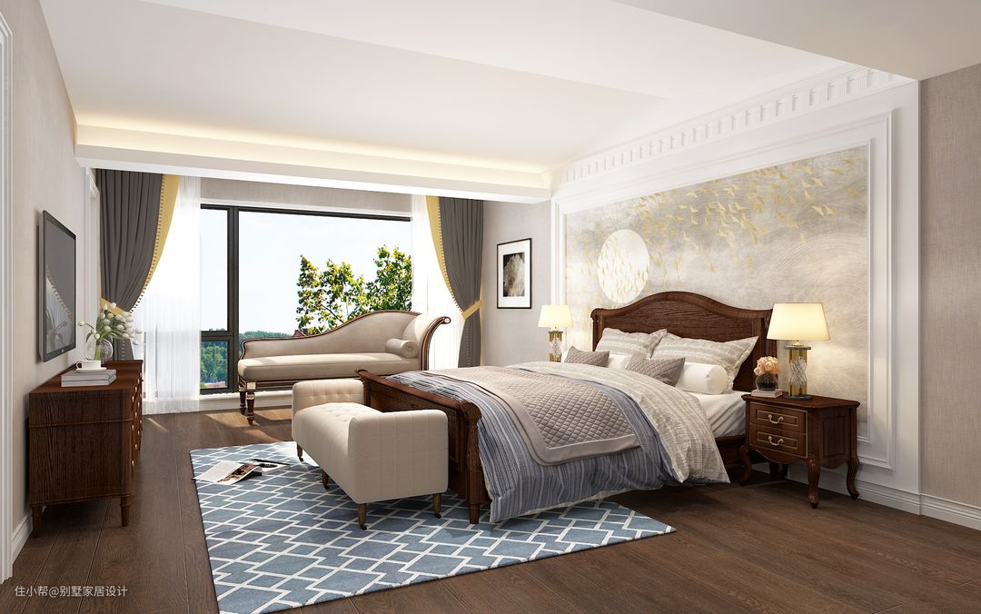 卧室:起居室则在客厅那种明亮的欧式风格的基础上,进行了色彩过渡,让人感觉非常安静沉稳;卧室简约的墙面贴以素雅的壁纸,加上丝质艺术窗帘,明亮的空间,卧室变得充满阳光、安静、舒适,可以让人有很好的休息、睡眠。