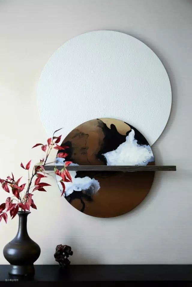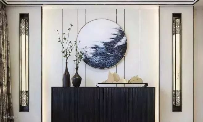 封闭式玄关墙的设计,往往在局部融入“天圆地方”的理念。一幅装饰画、一张桌子、一些小巧精致的艺术摆件,再辅以梦幻朦胧的灯光效果,就可以升华整个家居气质,打造韵味十足的玄关效果。