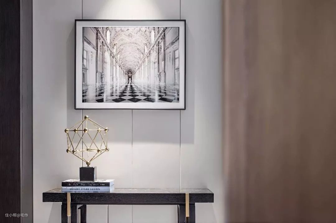 而在追求美观性的同时,你也可以在案几上花点心思,将它打造成一个兼具收纳与美观功能的玄关柜,在简约中开辟大容量的收纳空间。